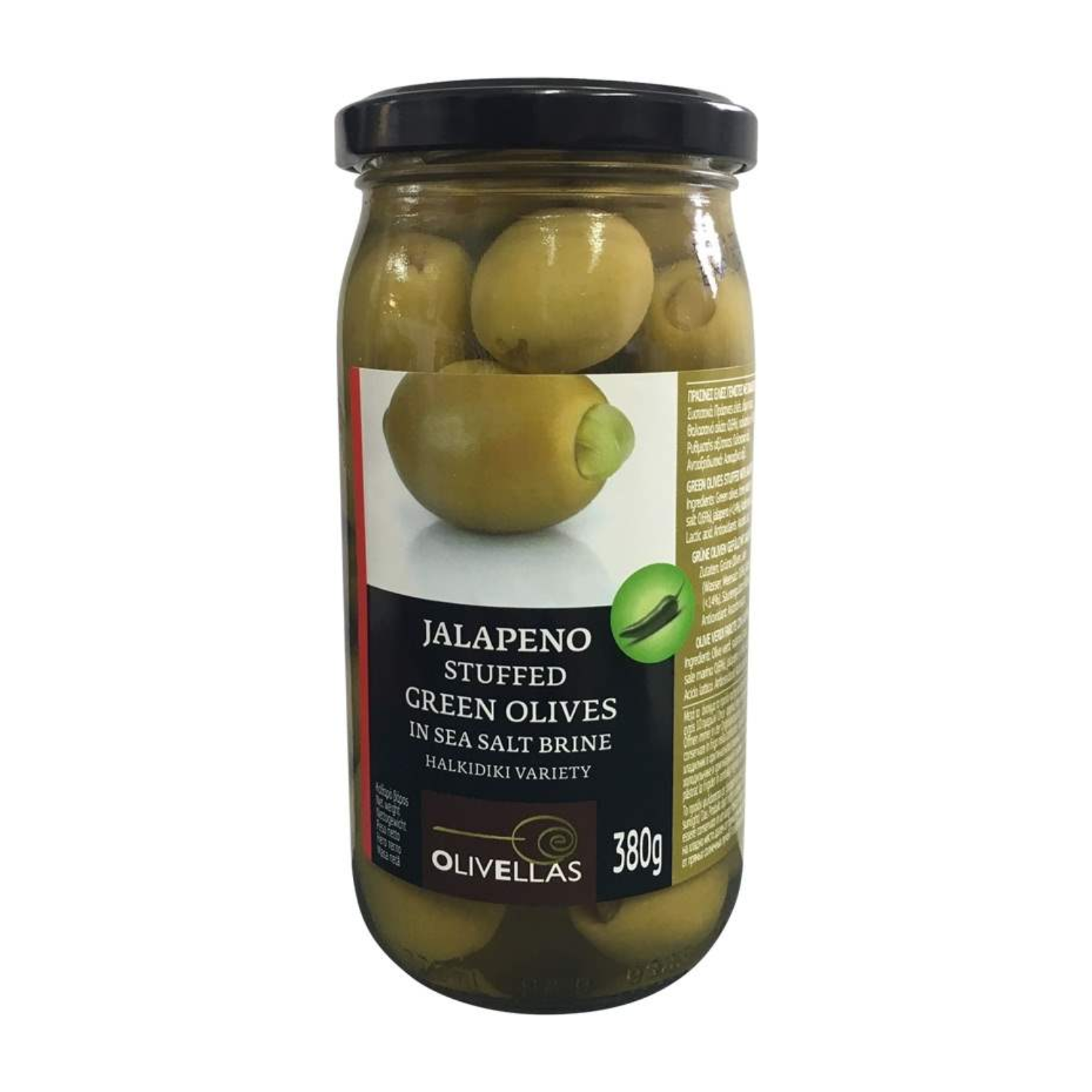 Olives 380g green with jalapeno Olivell Olivellas, Greek olives