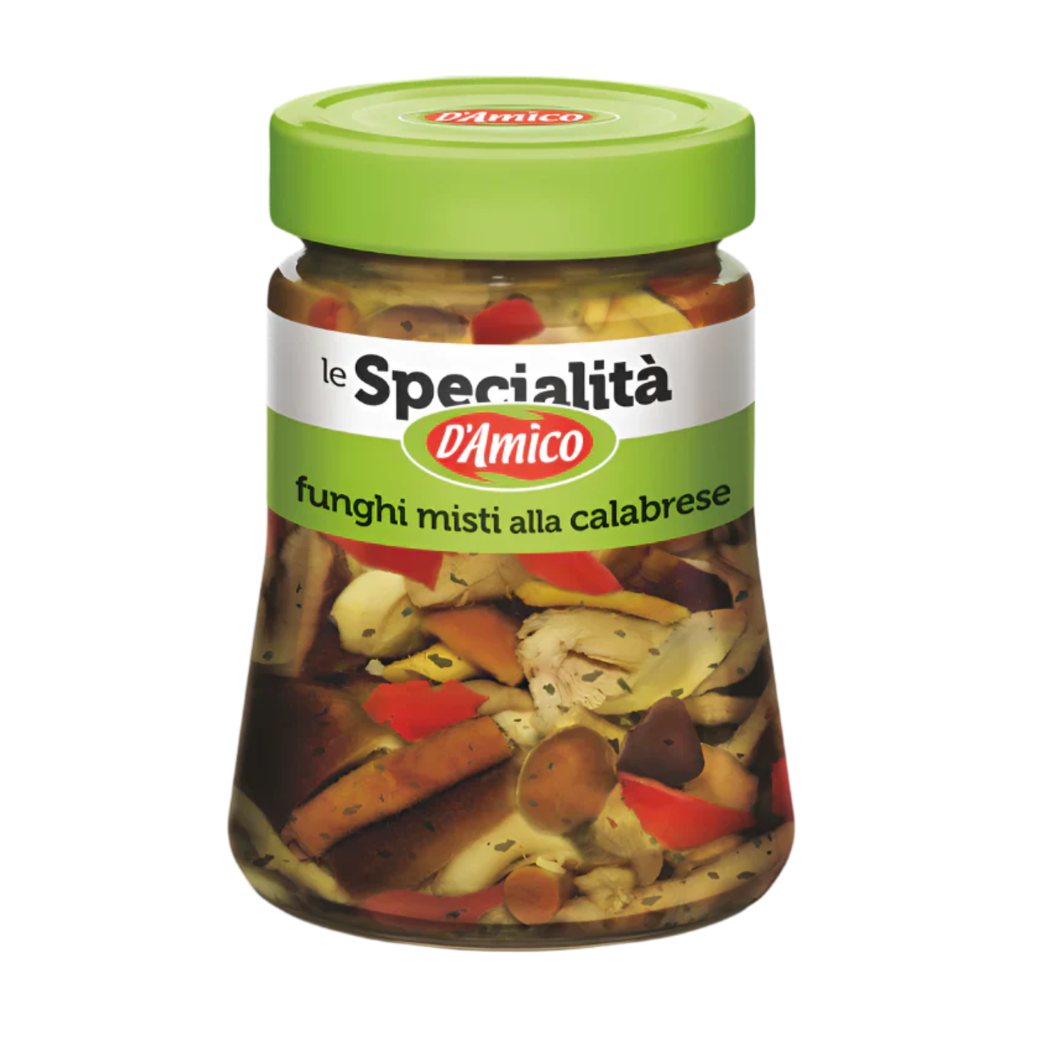Flavorful mushrooms marinated in oil with Calabrian spices. Perfect for antipasti, salads, or side dishes